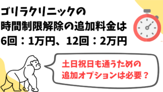 ブログ ゴリラクリニックの時間制限解除の料金を解説!土日も通える追加料金は必要? ゴリラクリニックのヒゲ脱毛を土日祝も通えるようにする追加オプションの料金(時間制限解除にかかる料金)は、「6回の場合:1万円、12回の場合:2万円」です。終了後に都度払いで施術を受ける場合でも、時間制限解除の効果が継続し、追加料金なしで土日... 2024.02.26 ブログ