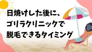 ゴリラクリニック 日焼け後にゴリラクリニックで脱毛できるタイミングはいつ?施術の延期を回避する方法! 【PR】本記事は、内容に広告、プロモーションを含みます。ゴリラクリニックで脱毛を考えているけれど、これからの旅行で日焼けしてしまうかもしれないと心配ですよね。日焼けした後は、いつから脱毛施術を受けることができるか気になると思います。日焼け後... 2024.03.07 ゴリラクリニックブログ